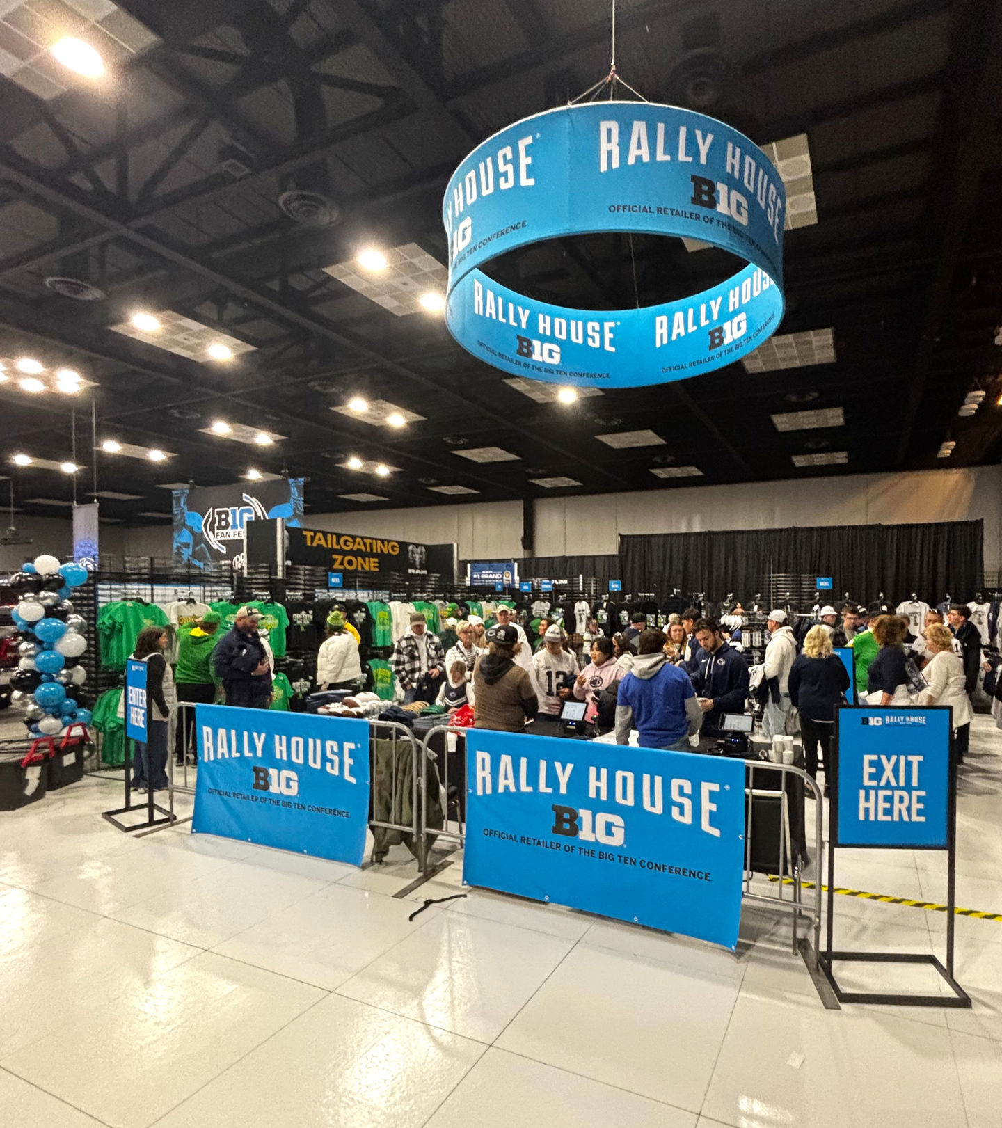 Led creative concepting and execution for official university and conference partnerships, overseeing everything from in-venue retail environments to e-commerce websites and ongoing multi-platform marketing support. By the end of 2024, Rally House operated in-venue and stadium retail for three universities, managed e-commerce sites for five universities, and supported Big Ten Championship events and the official conference e-commerce platform.